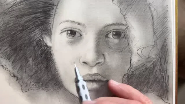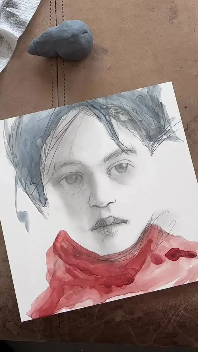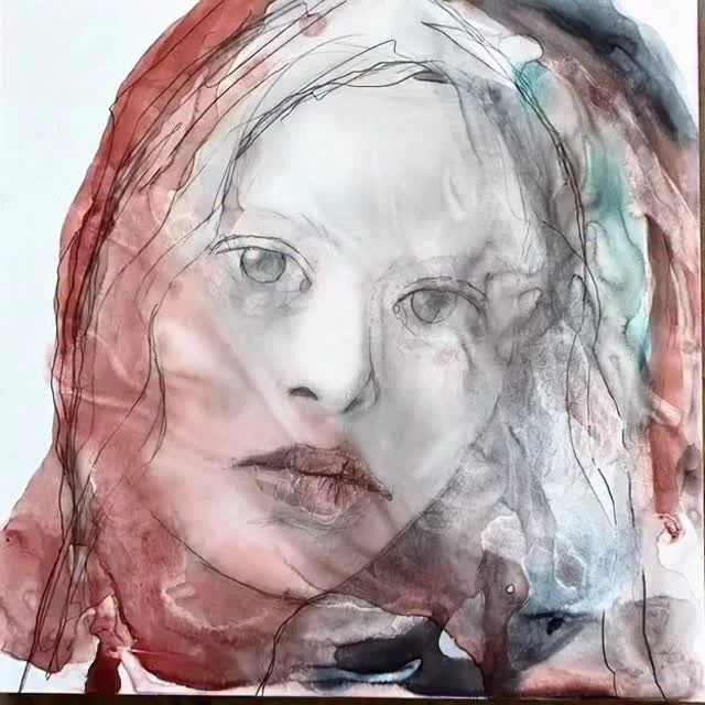 At best, the face emerging was uncertain. This was another desperate attempt at watercolor. In the latest pass I had added too much water and it puddled near the left cheek, and suddenly ran wild, obscuring one eye.